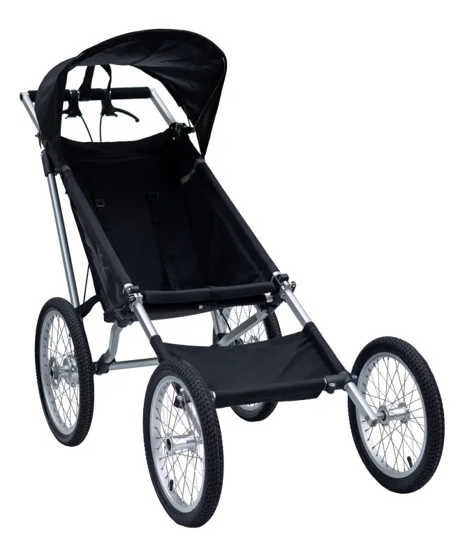 4Wheler 21 har et stort program af tilbehør, der tilpasser vognen en lang række særlige behov. Flere får muligheder for oplevelser i naturen. Stel og fælge er fremstillet i aluminium, hjulene er monteret med lukkede lejer og kraftige dæk. Det lette aluminium stel og de 4 hjuls placering giver vognen en fantastisk balance, der gør vognen let at køre med i alle former for terræn. Alle vogne har betræk, som kan vaskes, en stor lomme bag på ryggen, samt 5 punkt sele monteret i betræk. Ny flytbar solskærmshlder giver bedre flexibilitet i anvendelsen. De 4 hjul kan nemt »klikkes« af.
