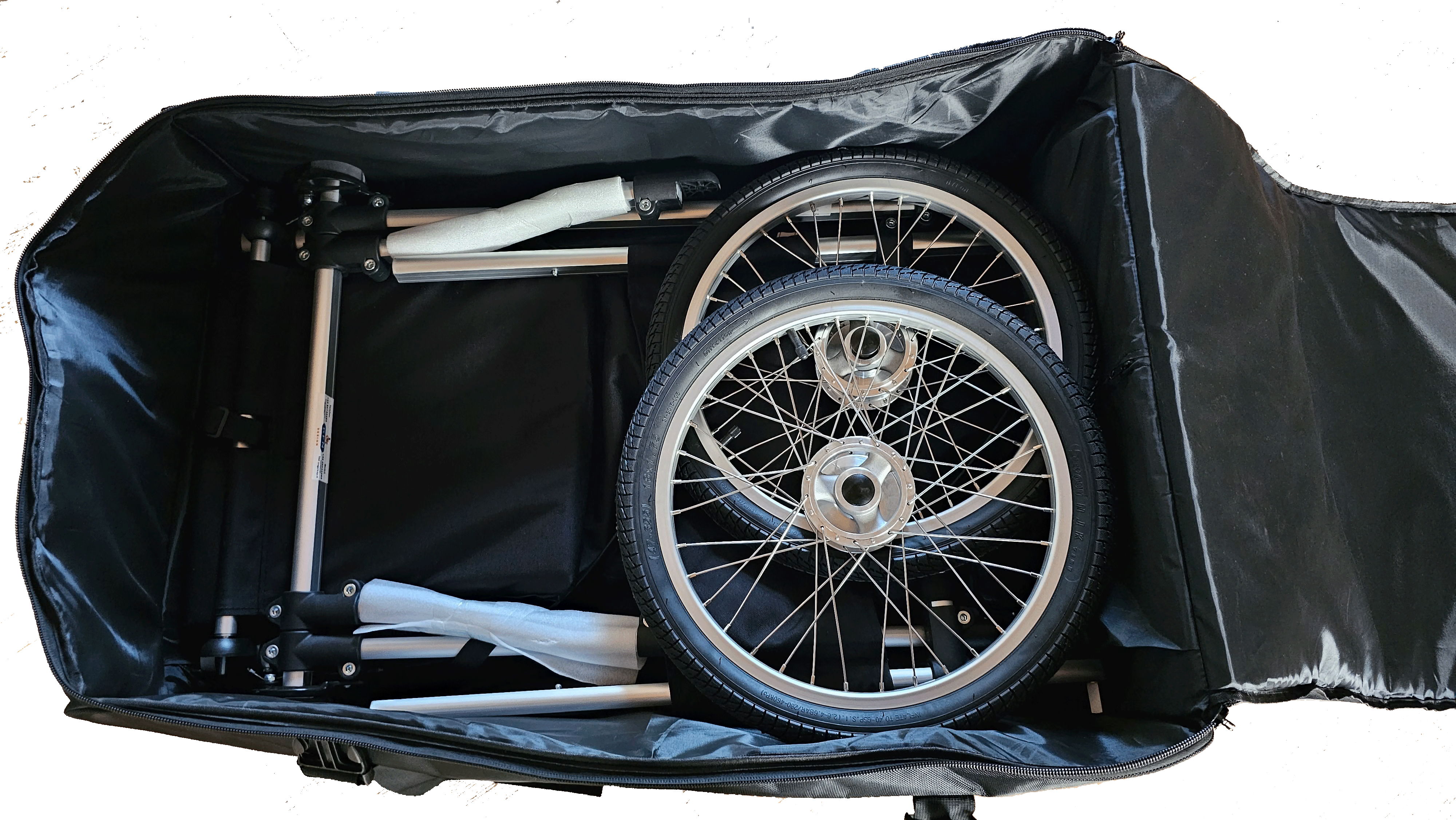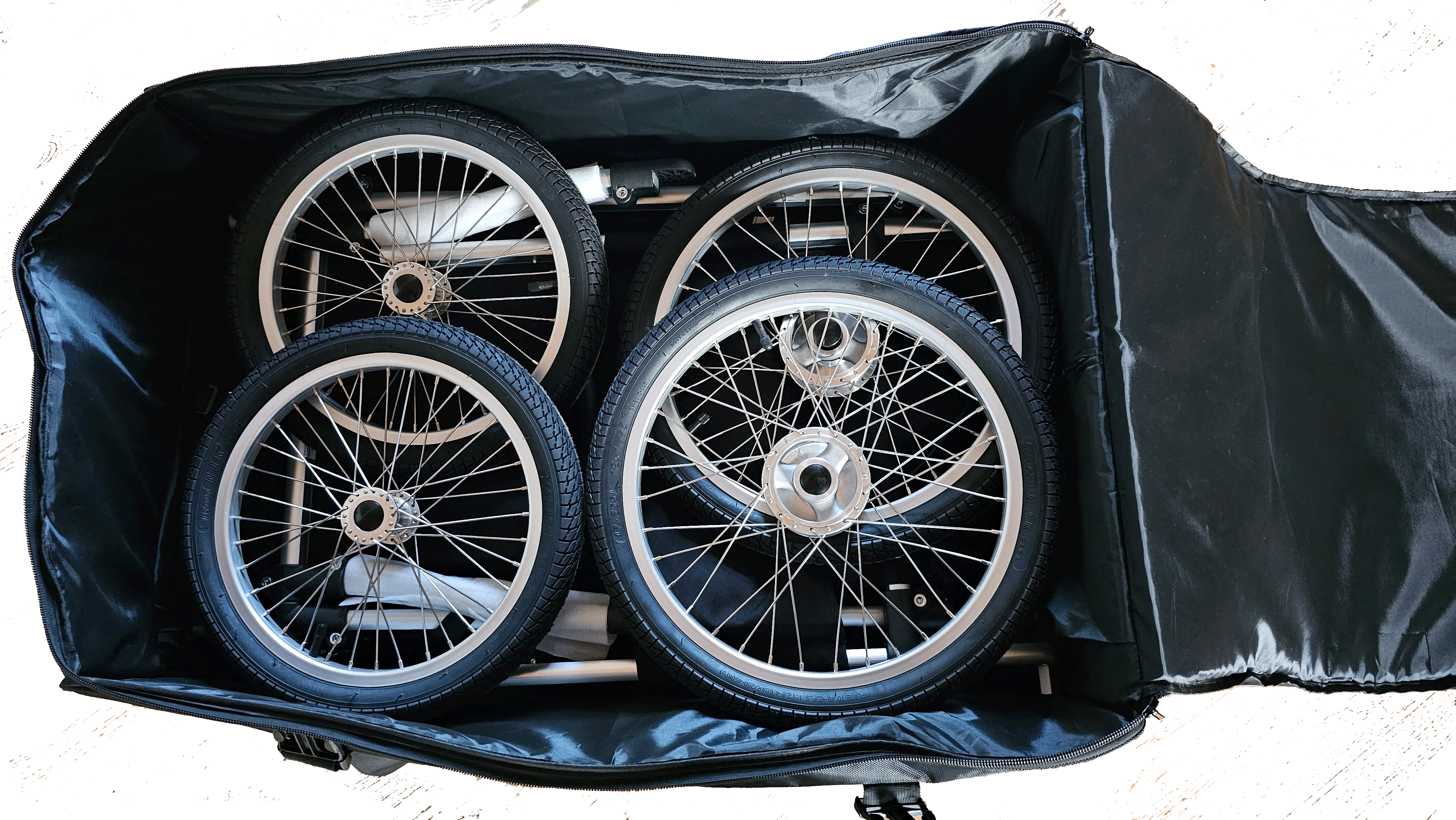 4Wheler 2021 model er, en fantastisk terrængående vogn til de lidt mere krævende ture til skov og strand. Vognen er med tromlebremser på baghjulene, sammen med sin store frigang blevet ekstra let at komme rundt med, ved særligt vanskelige passager, trapper, grøfter, stubbe, skrænter, mindre vandløb osv. De 4 hjuls store bæreflade og vognens lave egenvægt, ca. 14 kg, gør vognen ekstra let kørt på vanskelige underlag som sand, græs mark o. a. Justerbart styr, og aftagelig front giver enestående mulighed for at finde plads i en bil.